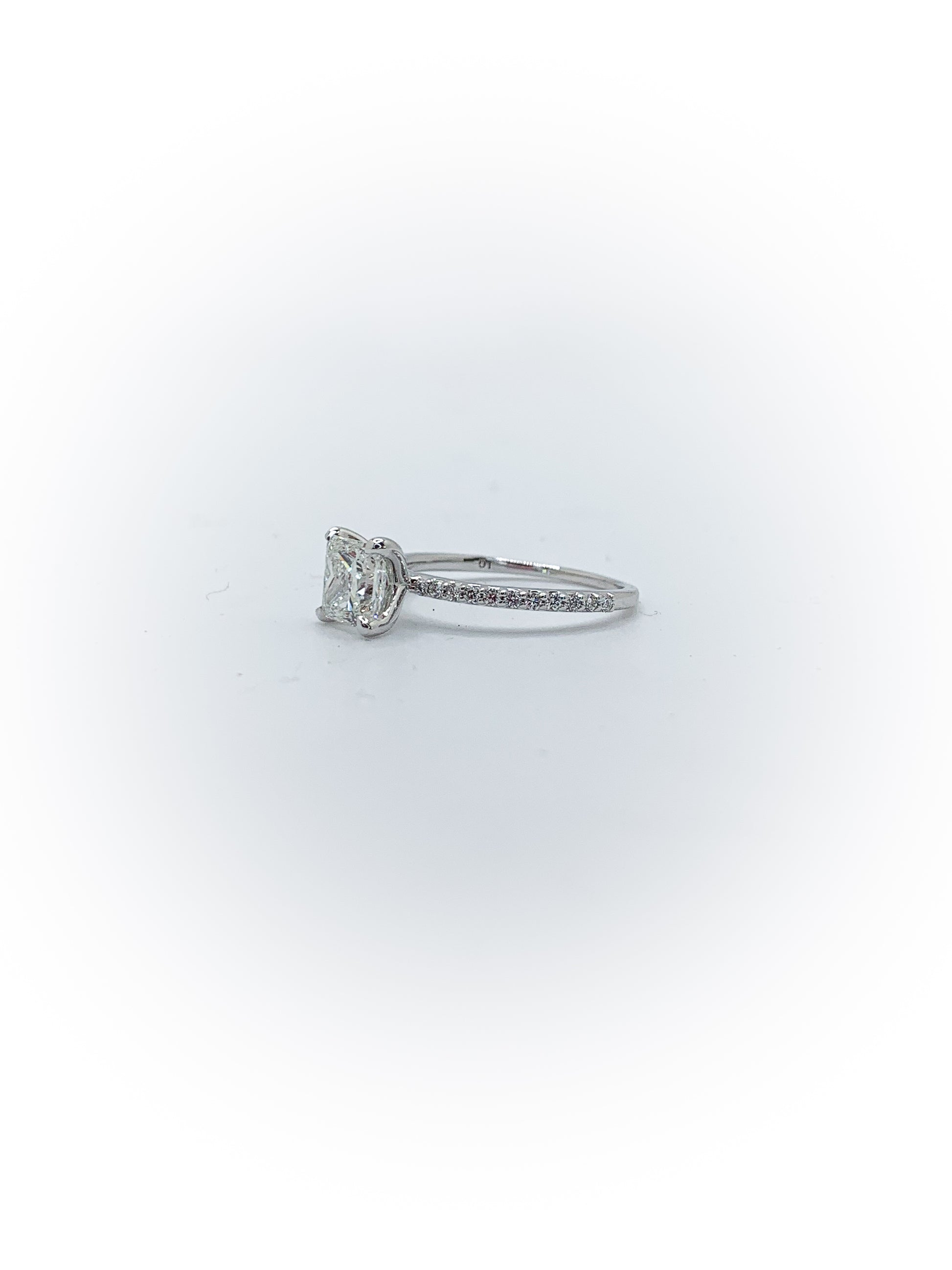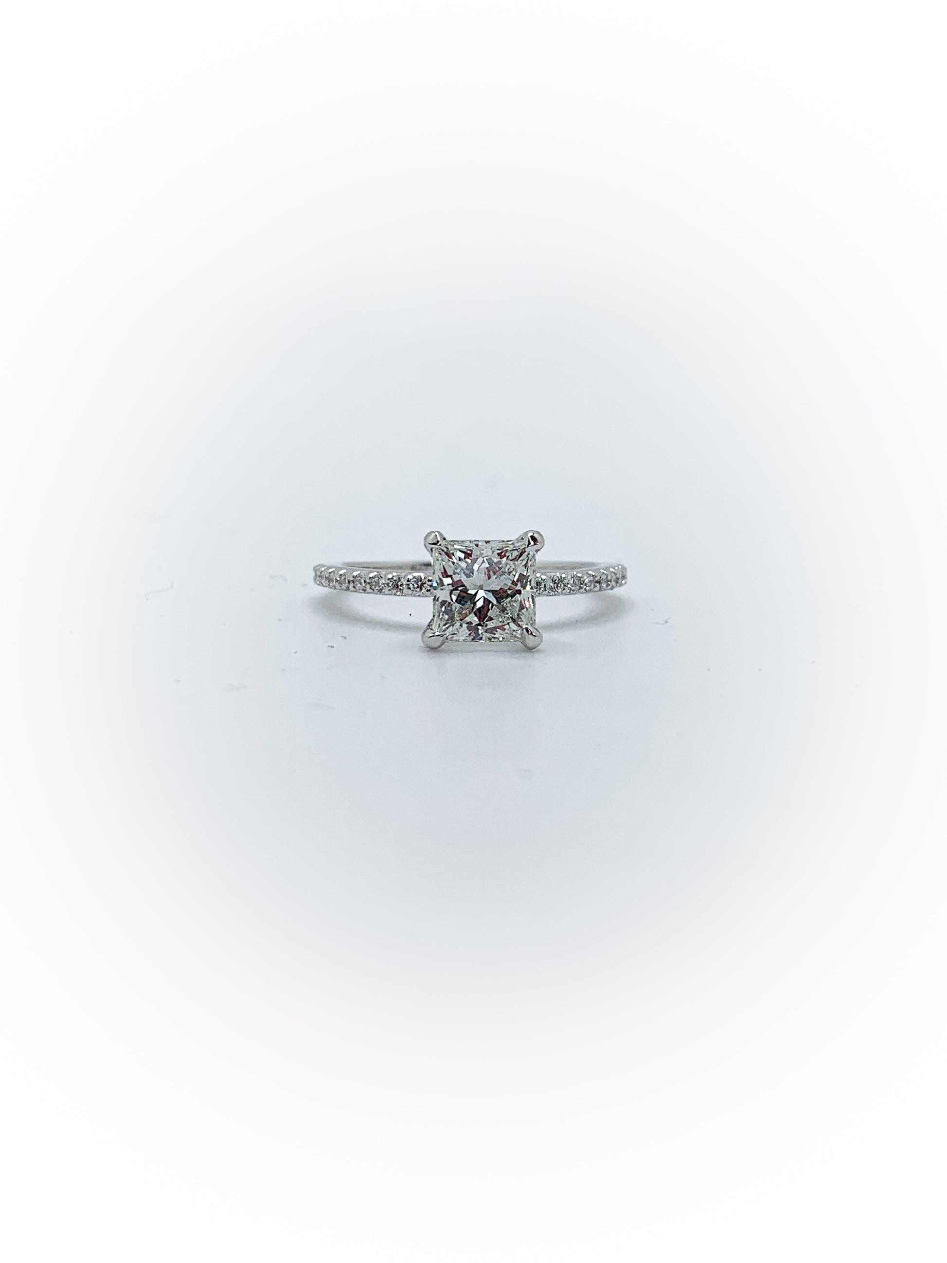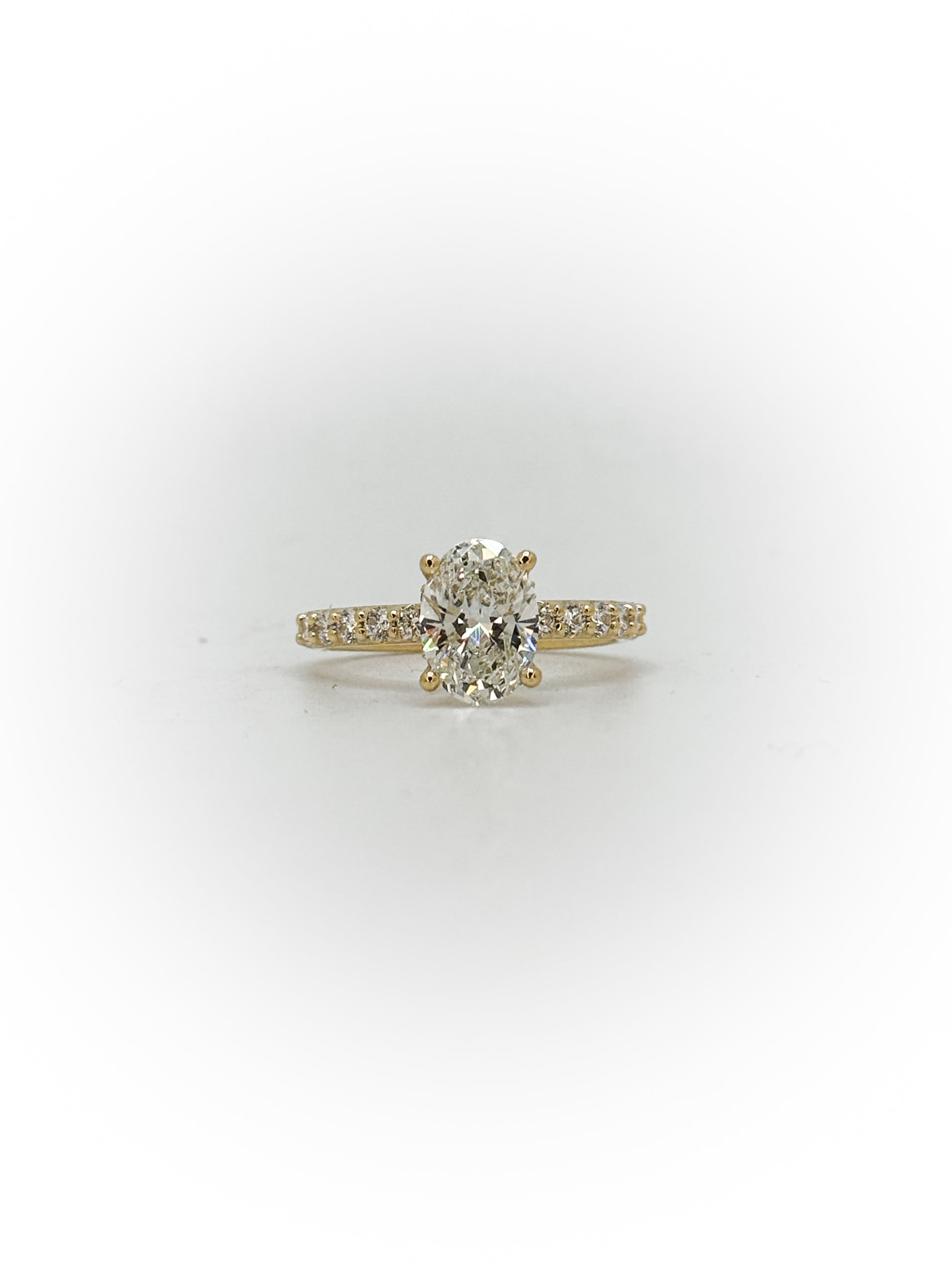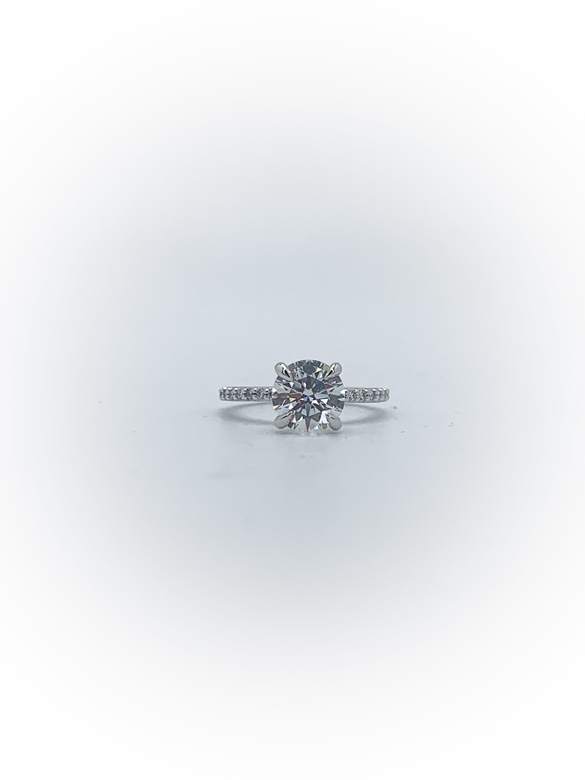 Classic with a little extra — this traditional setting features accent stones along the band for added shine without going over the top. Timeless, balanced, and built to catch light from every angle.